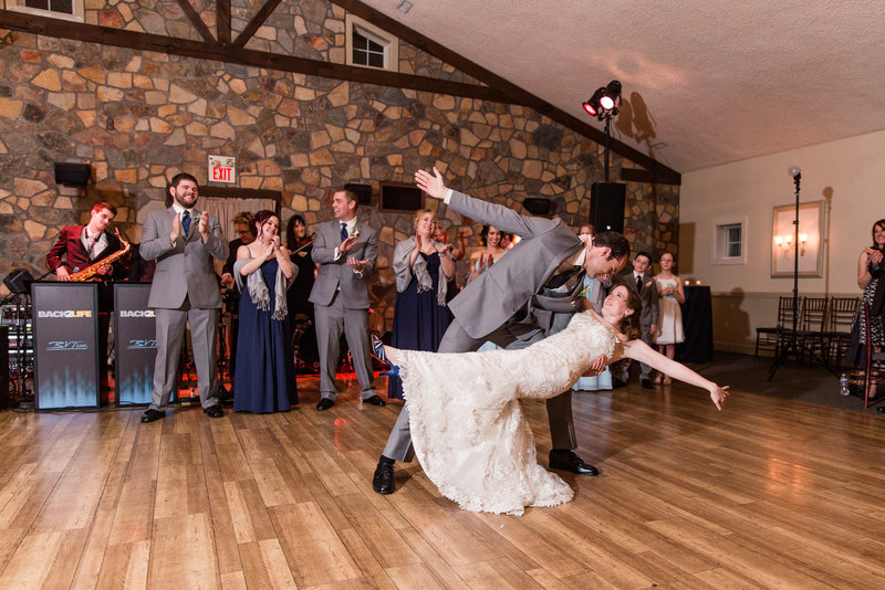 We actually prefer that you share your first dance right at the door. This will allow for your guests on both balconies and around the room to witness your first and parent dances. It also is easier for us to photograph than up on the catwalk or on the dance floor and will provide you with a better backdrop for photos.
